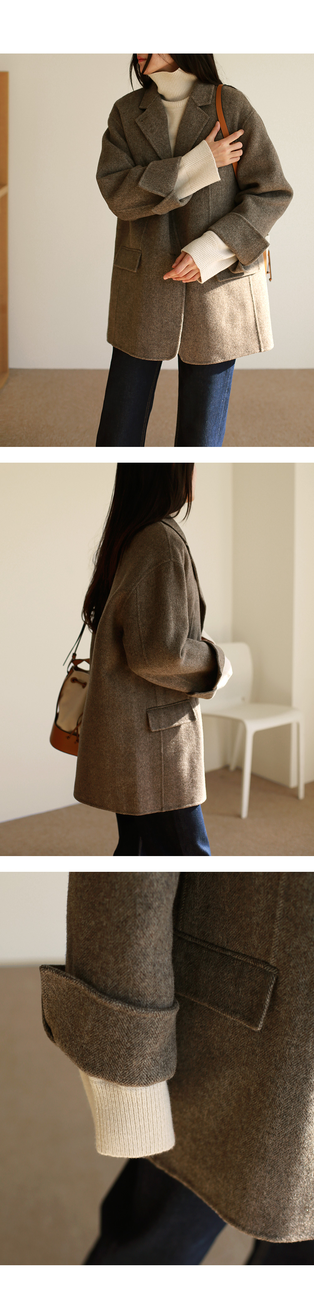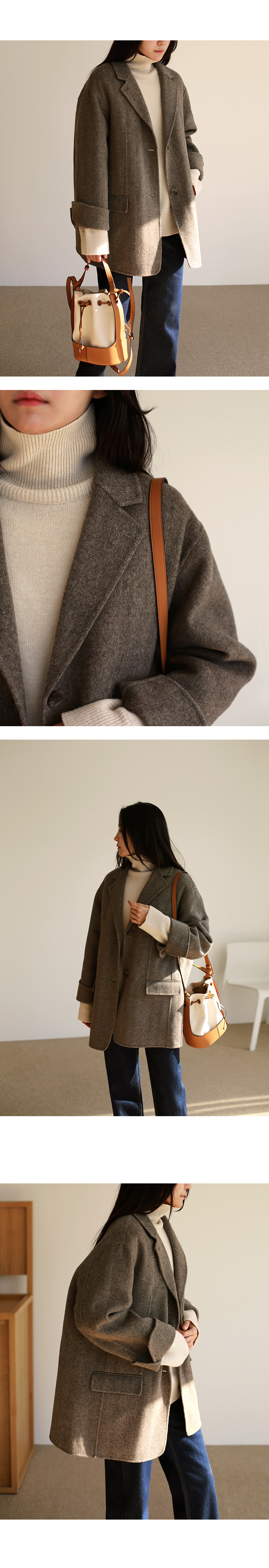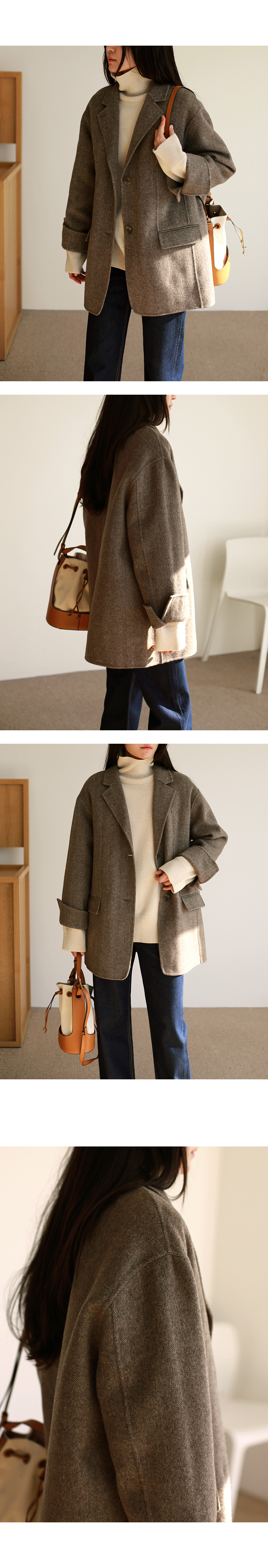 | 모델 착용정보 | J.Y 모델 (키 167cm, 상의 마른 55, 하의 26 inch, 신발 240mm) : 헤링본브라운 E.A 모델 (키 168cm, 상의 마른 55, 하의 25 inch, 신발 240mm) : 헤링본베이지 |