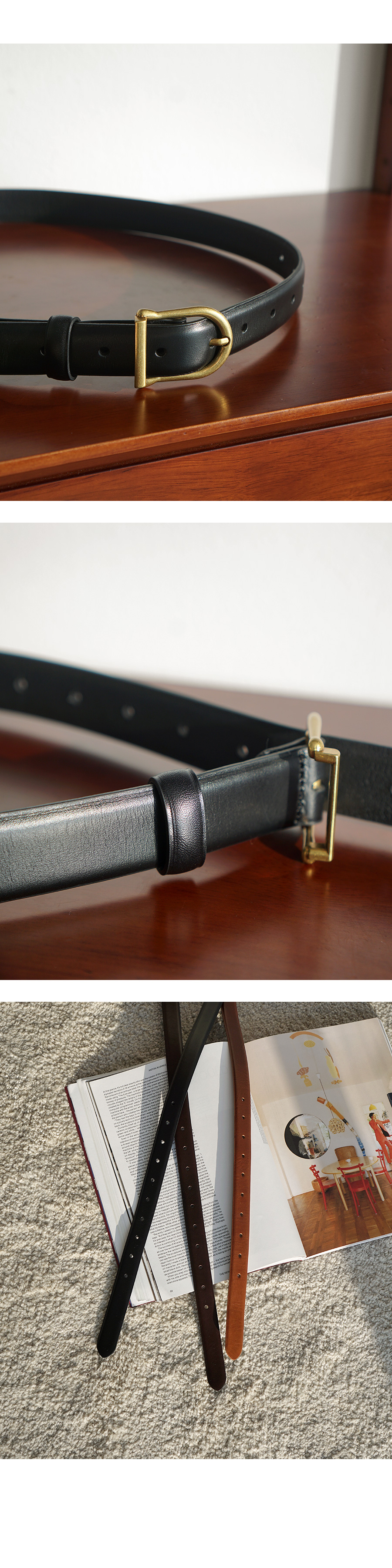 베이직한 무드의 천연 소가죽 벨트입니다
