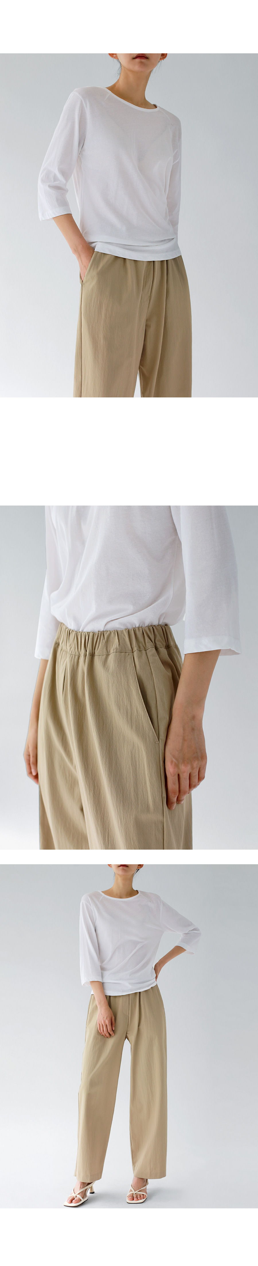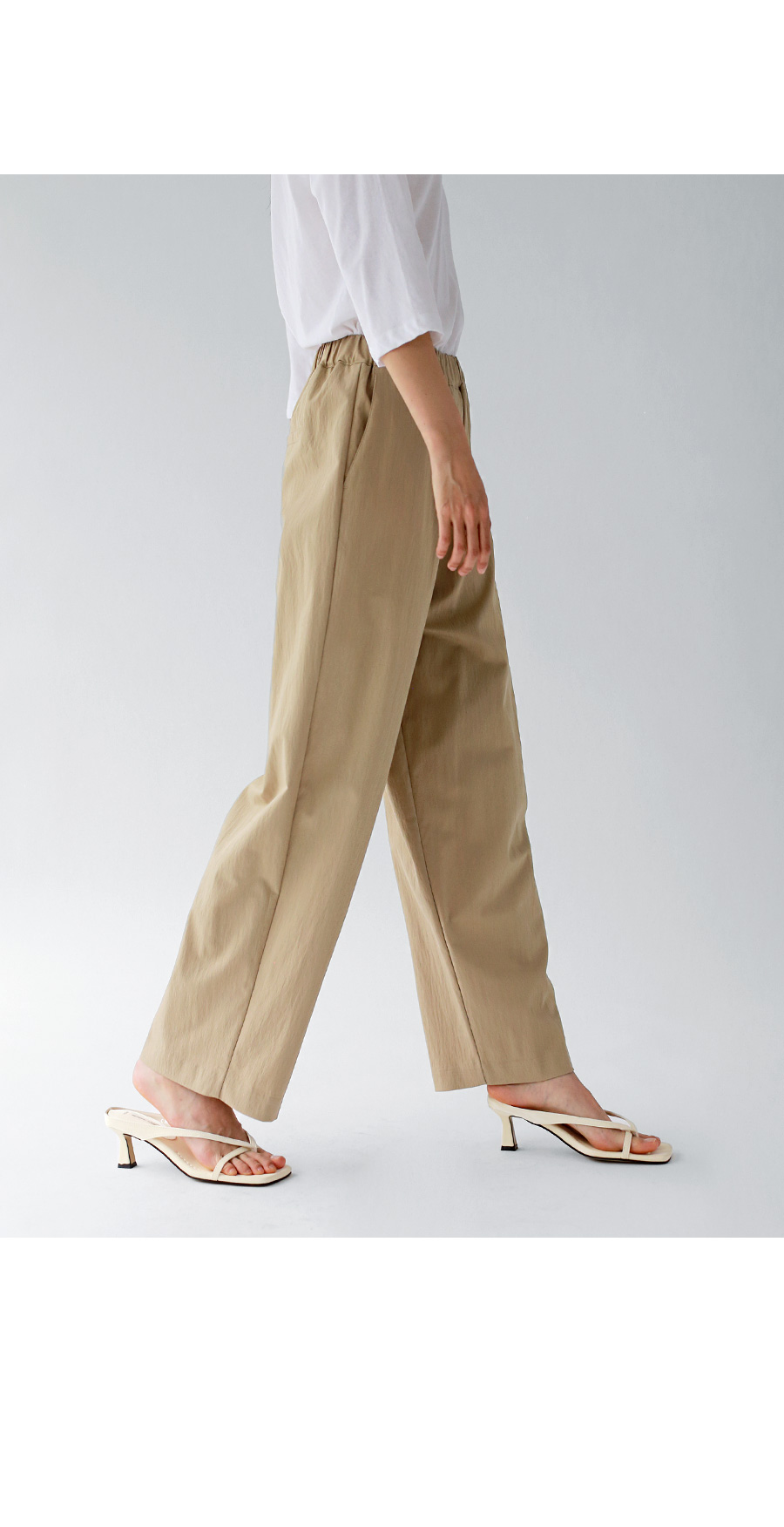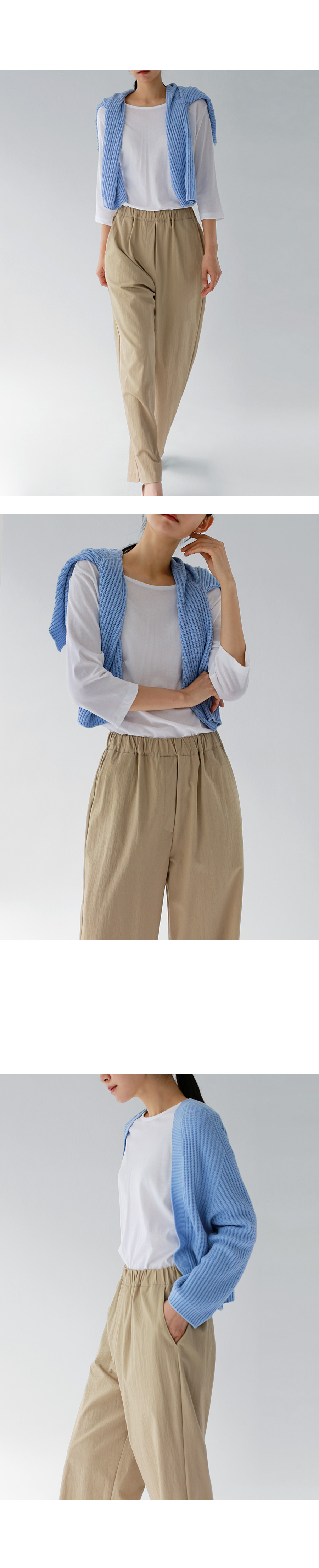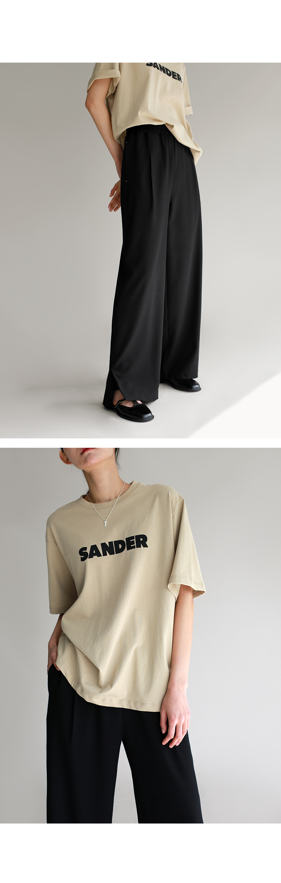 | 모델 착용정보 | J.Y 모델 (키 167cm, 상의 마른 55, 하의 26 inch, 신발 240mm) : 아이보리, 크림, 블랙 E.A 모델 (키 168cm, 상의 마른 55, 하의 25 inch, 신발 240mm) |