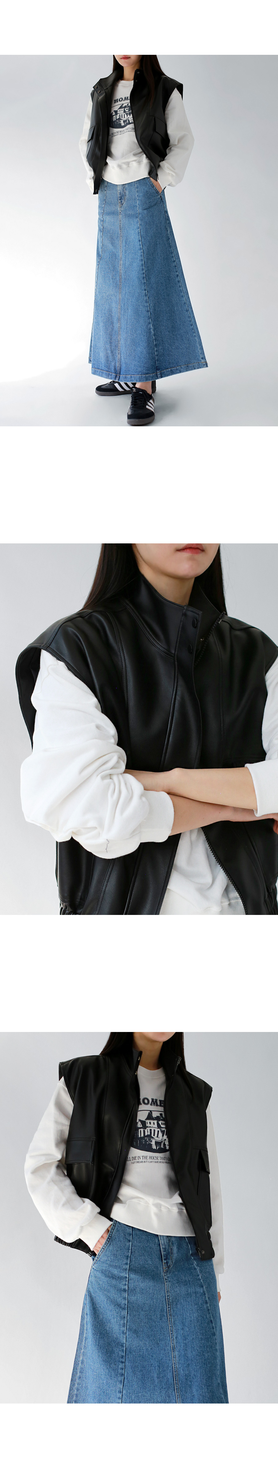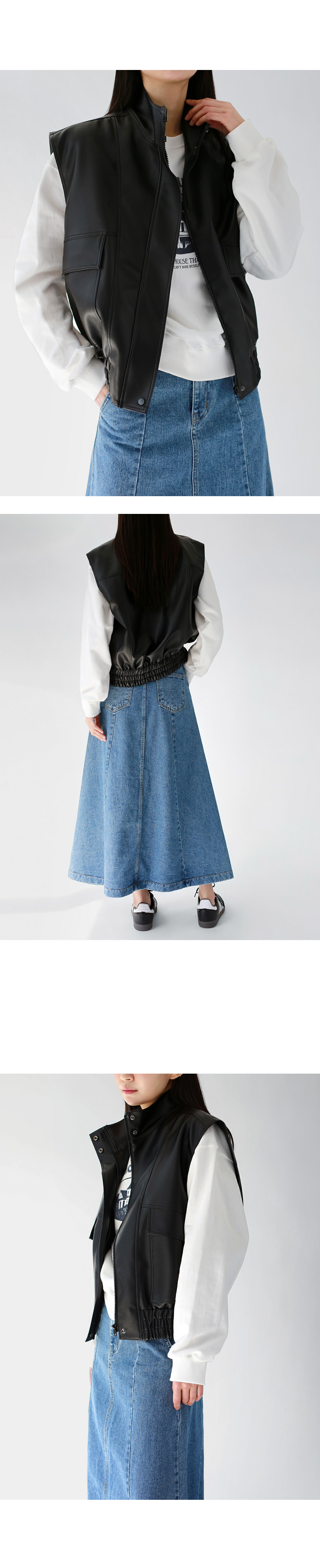 하이넥으로 연출가능한 지퍼 클로징입니다.