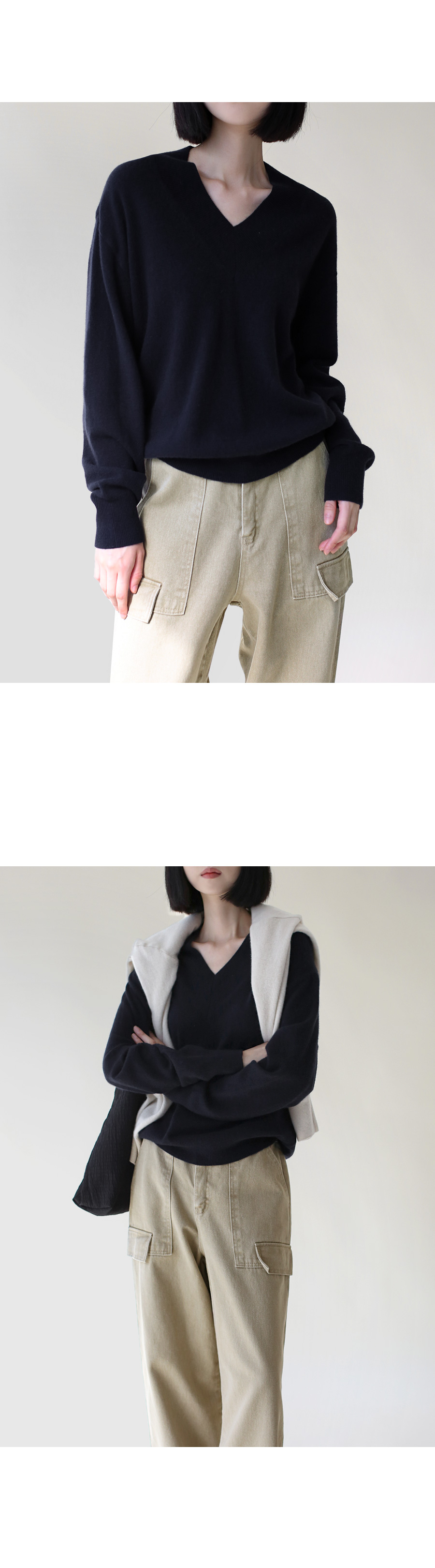 넓게 니팅된 브이존이