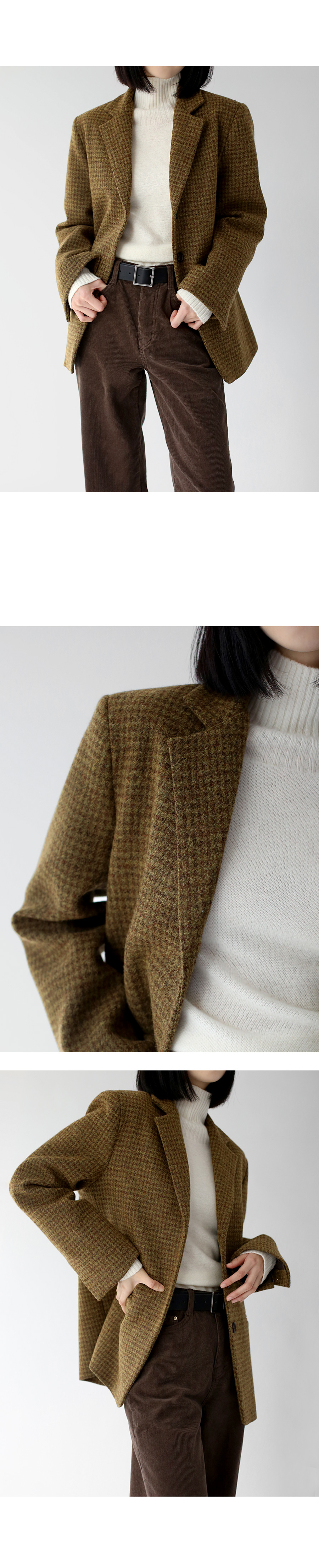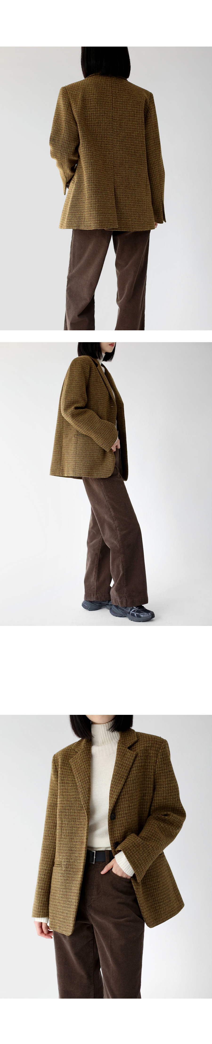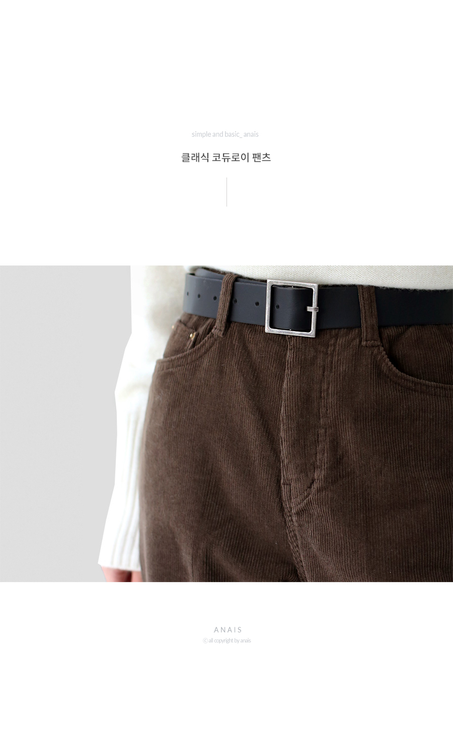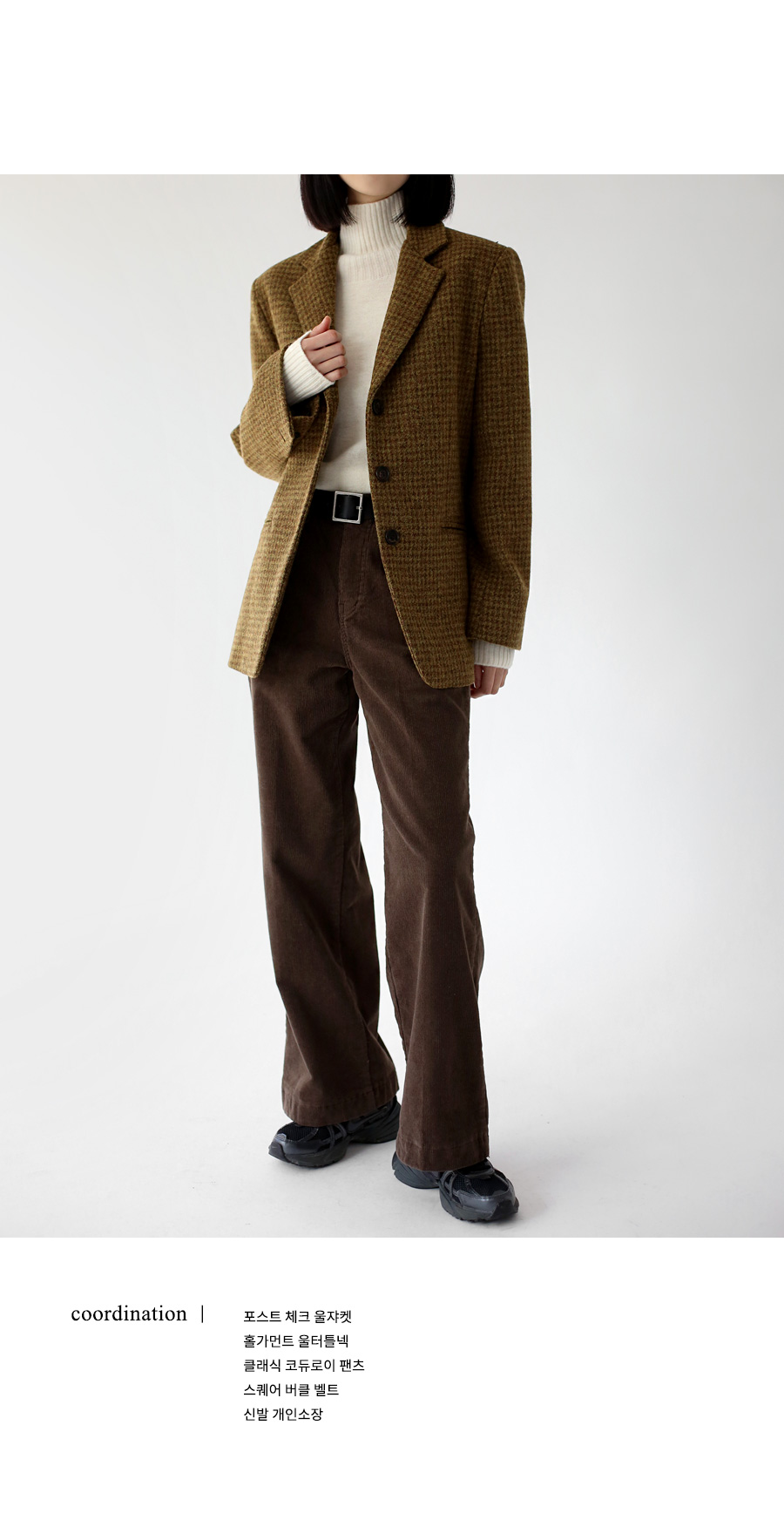 | 모델 착용정보 | J.Y 모델 (키 167cm, 상의 마른 55, 하의 26 inch, 신발 240mm) E.A 모델 (키 168cm, 상의 마른 55, 하의 25 inch, 신발 240mm) : 브라운, 소라 |