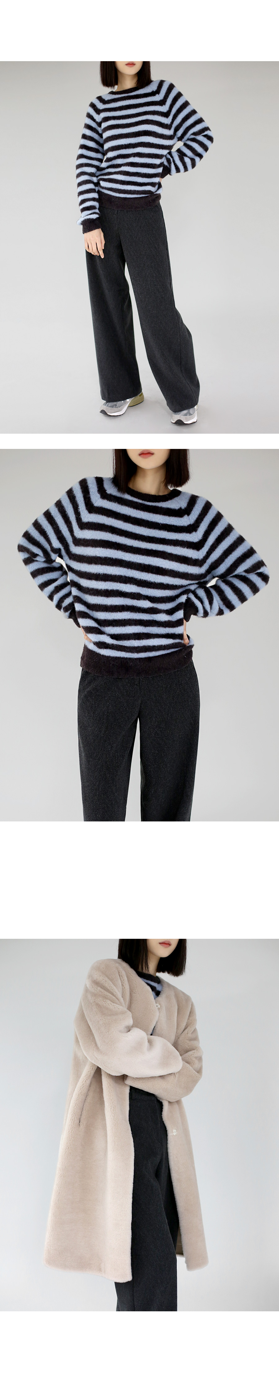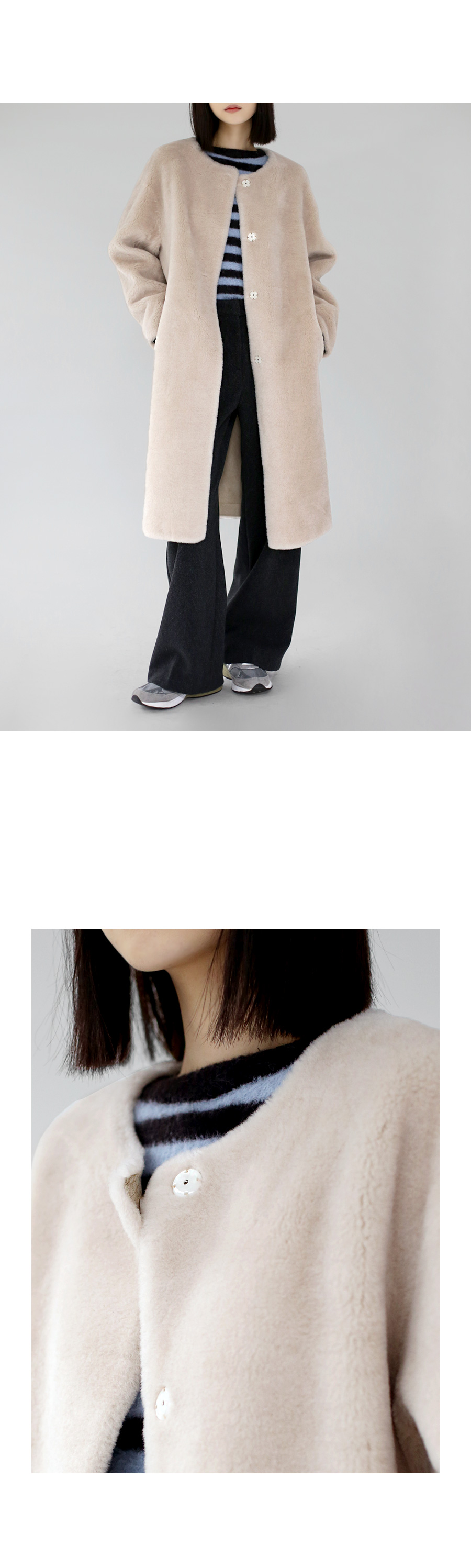 | 소재 | 폴리 67%, 레이온 10%, 아크릴 10%, 울/모 12%, 스판 1% (Polyester 67%, Rayon 10%, Acrylic 10%, Wool 12%, Spandex 1%) |