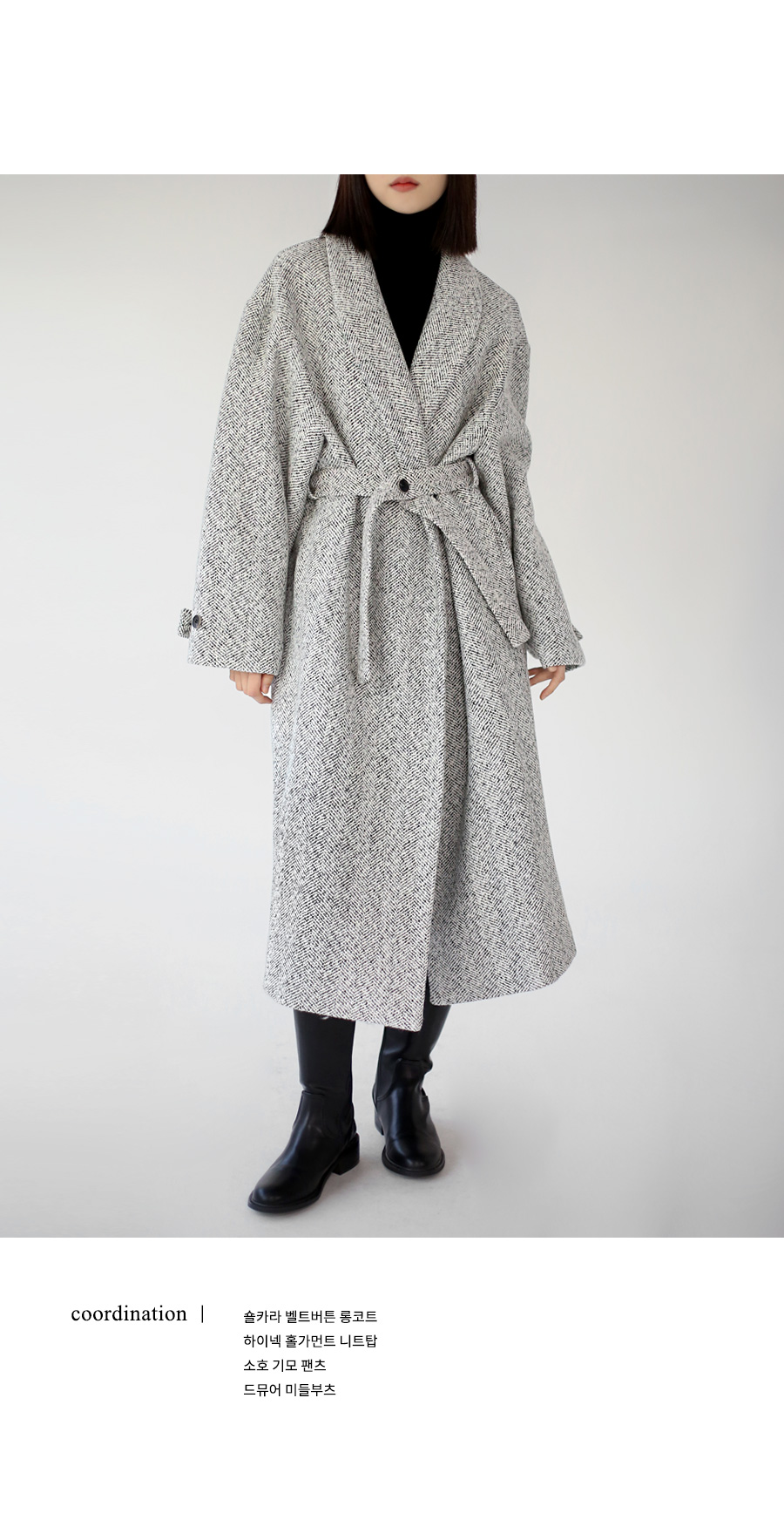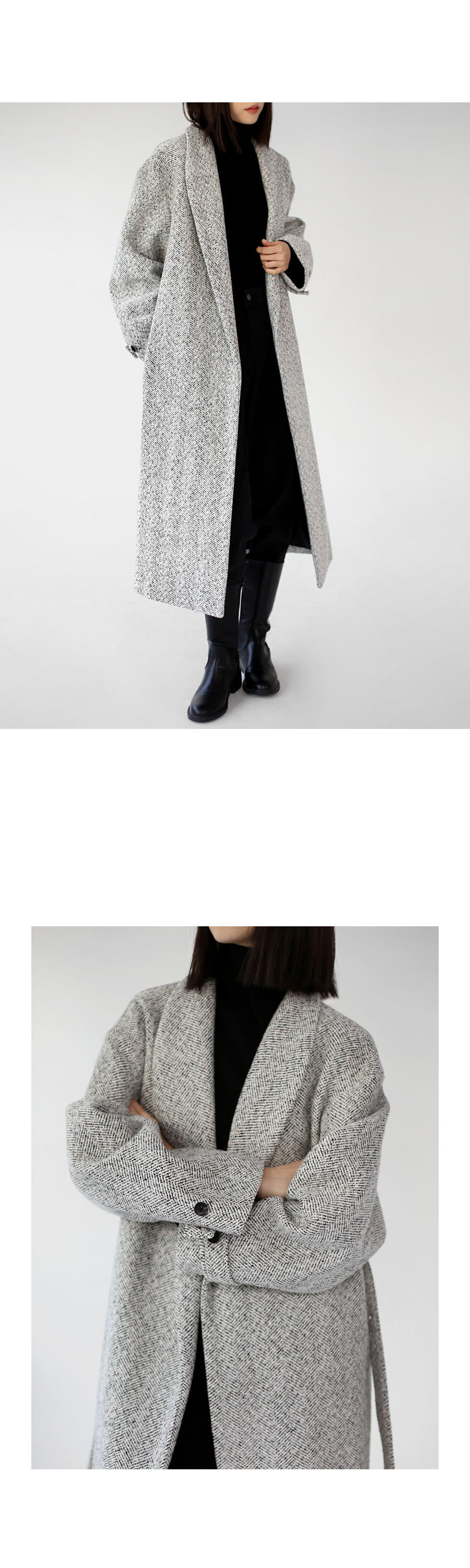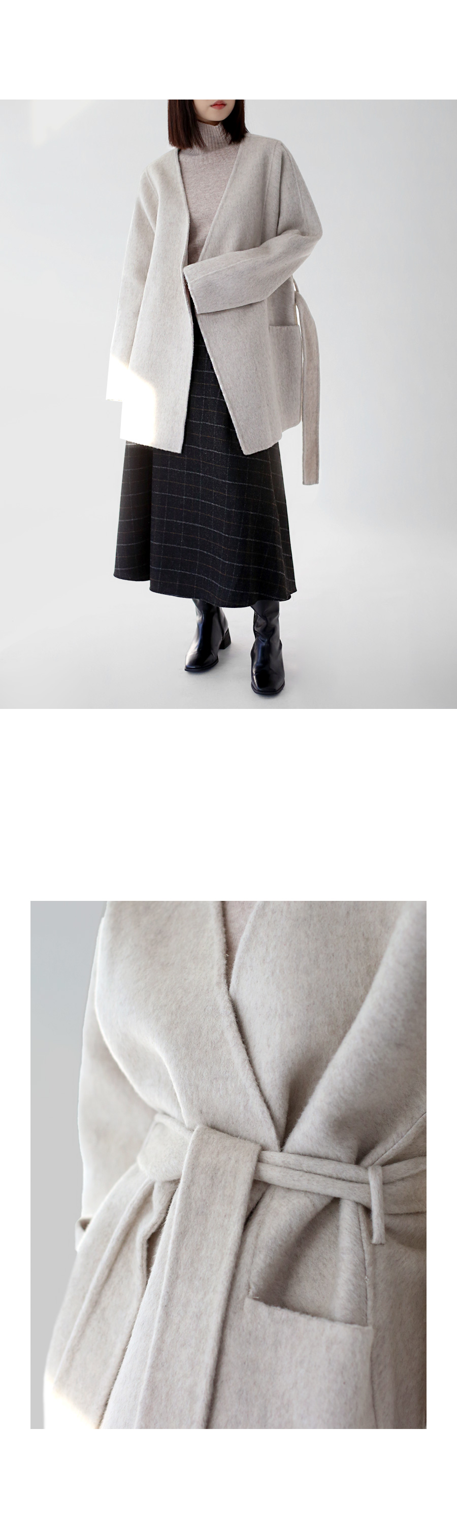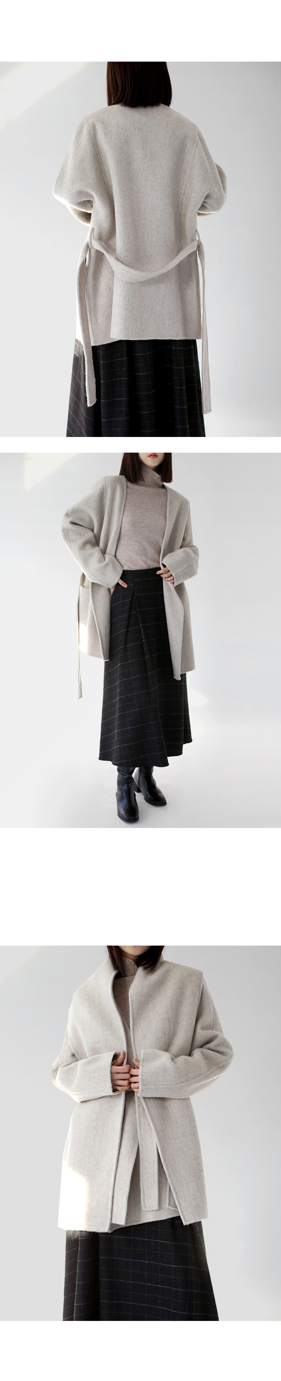 | 모델 착용정보 | J.Y 모델 (키 167cm, 상의 마른 55, 하의 26 inch, 신발 240mm) E.A 모델 (키 168cm, 상의 마른 55, 하의 25 inch, 신발 240mm) : 베이지, 멜란지그레이, 블랙 |