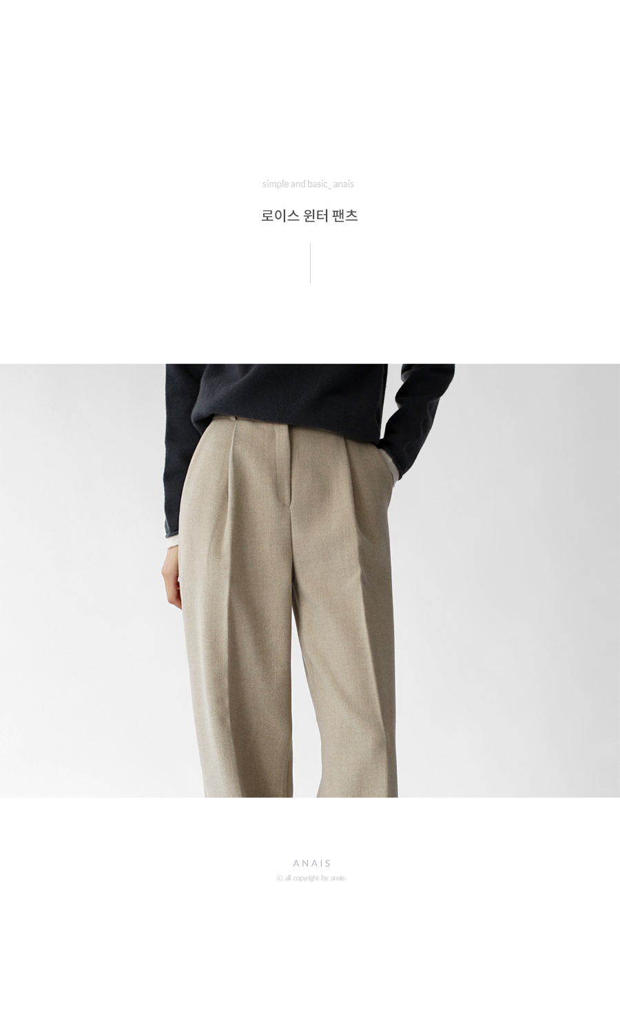 | 모델 착용정보 | J.Y 모델 (키 167cm, 상의 마른 55, 하의 26 inch, 신발 240mm) E.A 모델 (키 168cm, 상의 마른 55, 하의 25 inch, 신발 240mm) : 베이지 |
