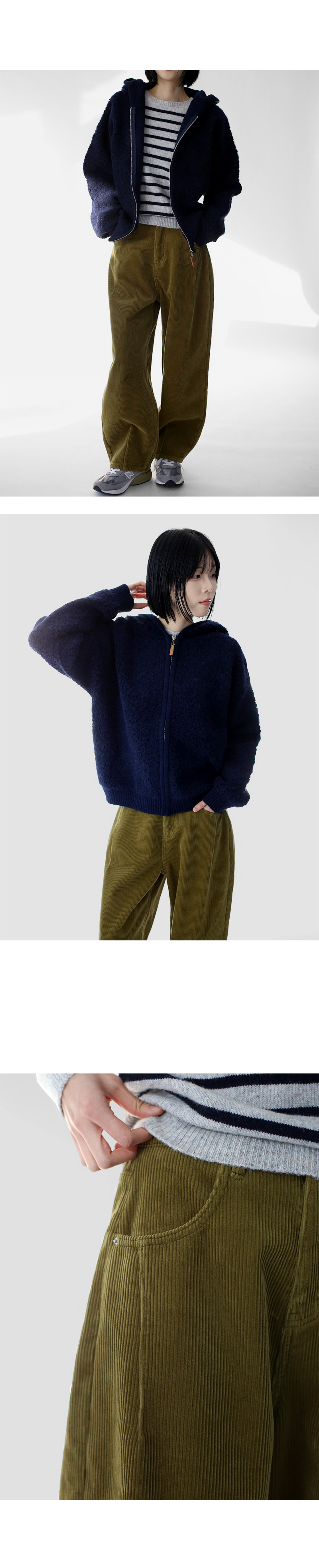 | 모델 착용정보 | J.Y 모델 (키 167cm, 상의 마른 55, 하의 26 inch, 신발 240mm) E.A 모델 (키 168cm, 상의 마른 55, 하의 25 inch, 신발 240mm) : 브라운, 네이비, 올리브 |