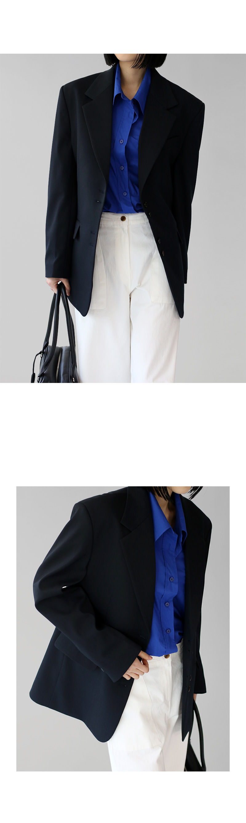 | 모델 착용정보 | J.Y 모델 (키 167cm, 상의 마른 55, 하의 26 inch, 신발 240mm) E.A 모델 (키 168cm, 상의 마른 55, 하의 25 inch, 신발 240mm) : 네이비 |