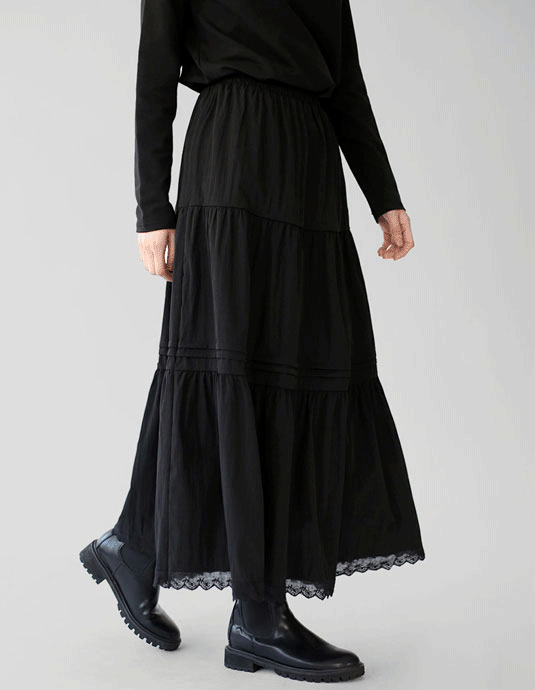 Tiered lace two-tone long skirt