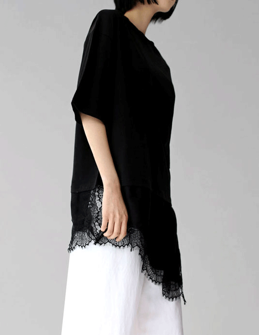기본티, 와이드팬츠와 시크한 룩으로.