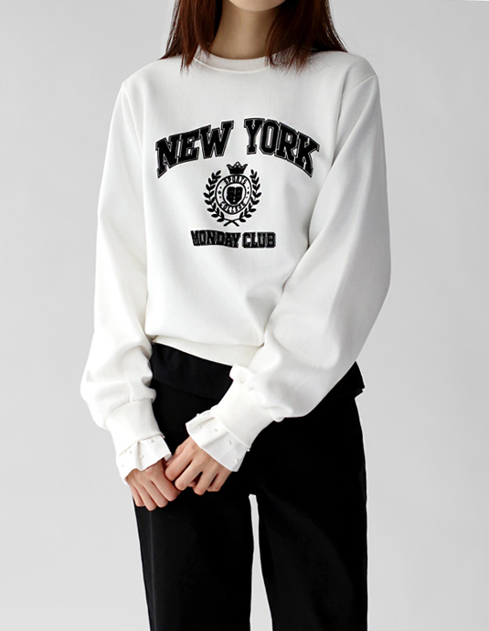 Sleeve pearl man-to-man