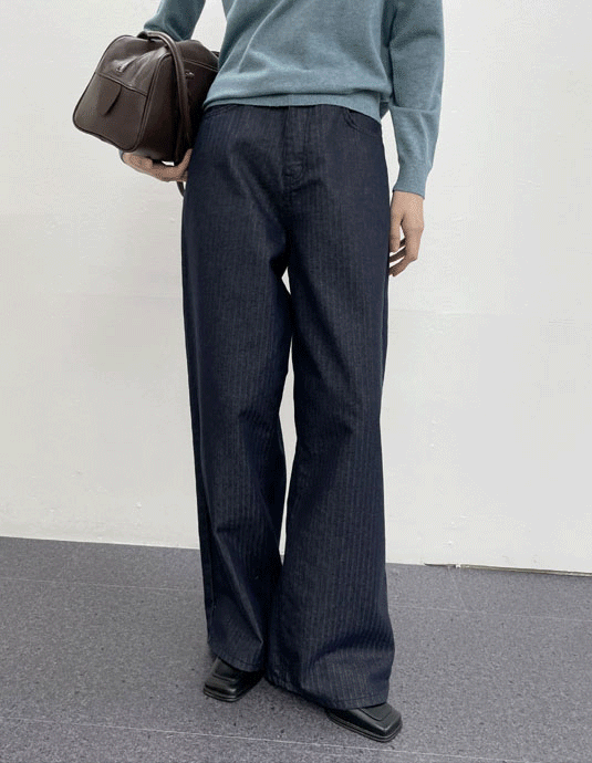Herringbone non-fade wide denim pants