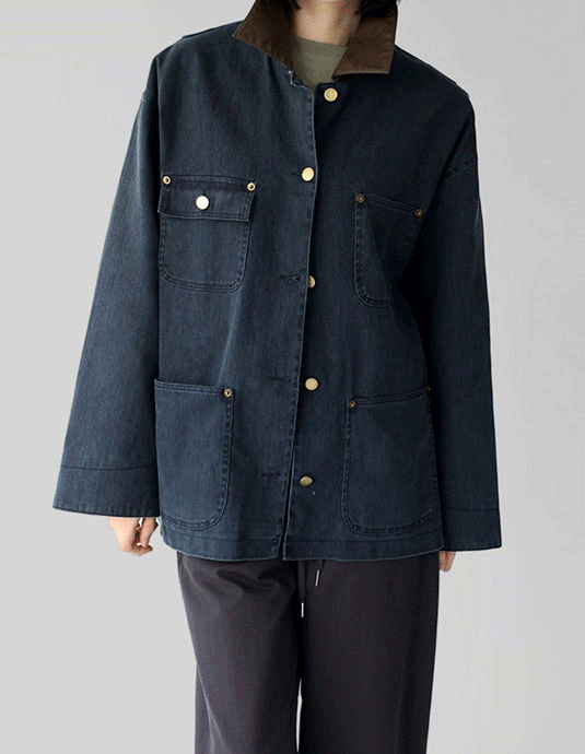 Leather collar work jacket